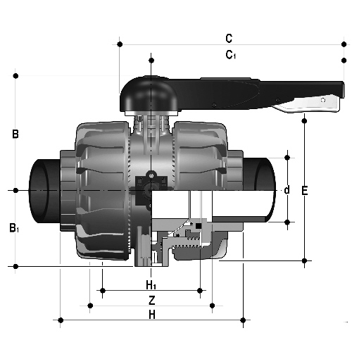 | -Anschluss: Klebemuffe -radial ein- und ausbaubar -mit gesicherter Überwurfmutter -Dichtung: PTFE/EPDM -ab d75 mm kundenspezifisch kennzeichenbar mit "Labelling System" (siehe Zubehör) |