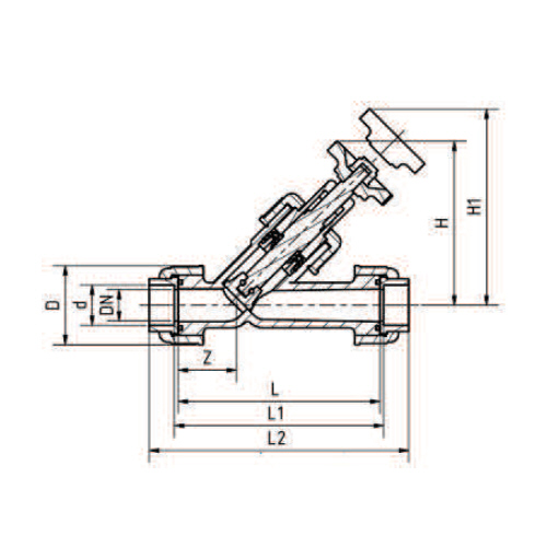 Schrägsitz-Handabsperrventil aus PE-elektrisch leitfähig, PP-el Muffenschweißanschluss, FKM Dichtung