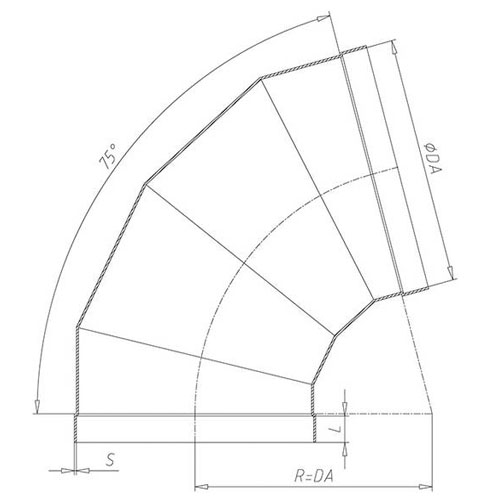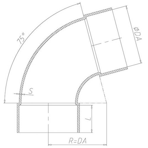PP-EL-s Rohrbogen mit Muffen 75° R=DA, elektrisch leitfähig