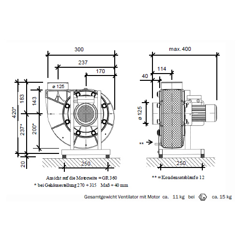 Radialventilator FRv 125/ 4/ L / D/ EX