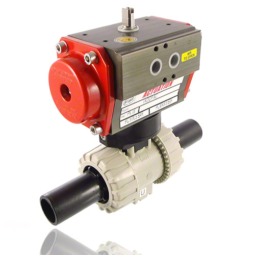 Entdecken Sie unsere pneumatischen Kugelhähne aus PVDF, PVC-C, ABS, PVC-U und PP - die bevorzugte Wahl in der Verfahrenstechnik. Unsere robusten VKD-Kugelhähne mit feststellbaren Überwurfmuttern bieten zuverlässige Lösungen für industrielle Anwendungen. Je nach Anlage und Infrastruktur können wir Ihnen sowohl elektrische als auch pneumatische Ausführungen liefern. In der pneumatischen Ausführung stehen Ihnen die Varianten "Normal offen" (NO), "Normal geschlossen" (NC) und "Doppelt wirkend" (DA) zur Verfügung. Ihre Vorteile bei uns:- Größen von DN 10 mm bis DN 50 mm - Maximaler Betriebsdruck von 16 bar bei 20°C - Die neue Sperrvorrichtung sichert die Überwurfmuttern unter verschiedenen Einsatzbedingungen wie Vibrationen oder thermischer Ausdehnung zuverlässig in Position. - Dank des einfachen Ausbaus der Armatur aus dem Rohrleitungssystem können O-Ringe oder Kugelsitze schnell und werkzeuglos ausgetauscht werden. - Die Kugelabdichtung ist durch eine präzise Mikro-Justierung frei von Rohrleitungskräften und gewährleistet eine leckagefreie Trennung der drucklosen Seite der Leitung. Pneumatischer Antrieb:- Spezielle Aluminiumlegierung für den Einsatz in aggressiven Umgebungen - Speiseanschlussstücke nach NAMUR-Normen gebohrt - Obere Bohrung zur Befestigung von Zubehör und oberes Ritzelende gemäß VDI/VDE 3845 Normen. Anschlussmöglichkeiten:Unsere Kugelhahnreihe entspricht den folgenden Normen für verschiedene Anschlussarten: - Klebeanschluss PVC-U: EN ISO 1452, EN ISO 15493, ISO 727, DIN 8062, DIN 8063, ASTM D2467, BS -1, ISO 727-2, JIS K 6743, JIS 6741-2 - Klebeanschluss PVC-C: EN ISO 15493, ISO 727-1, ASTM F439 - Schweißanschluss PP-H: EN ISO 15494 - Schweißanschluss PVDF: EN ISO 10931 - Gewindeverbindung: ISO 228-1, DIN 2999, ISO 7-1, ASTM D2467, ASTM F437, BS 21, BS 10226, JIS B 0203 - Flanschanschluss: ISO 2084, EN ISO 1092-1, EN ISO 1452, EN ISO 15493, EN 558, ISO Auf Anfrage erhältliches Zubehör:- Optische Stellungsanzeige - Elektro-pneumatischer Stellungsregler - Pneumatischer Stellungsregler - Endschalter - 3-5/2-Wege-Vorsteuerventile Alle oben genannten Informationen wurden mit größter Sorgfalt und bestem Wissen erstellt. Dennoch können daraus keine verbindlichen Ansprüche abgeleitet werden. Weitere Informationen finden Sie im Dropdown-Menü neben dem Artikel oder kontaktieren Sie uns gerne telefonisch. |
