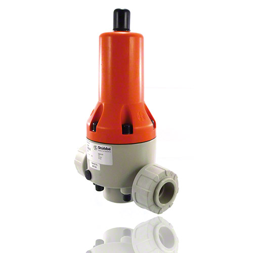 Druckminderventile aus Kunststoff bieten eine effiziente Lösung zur präzisen Regulierung des Drucks in unterschiedlichen Anwendungsbereichen. Im Gegensatz zu herkömmlichen Metallventilen bestehen diese Ventile vollständig aus hochwertigen Kunststoffmaterialien. Sie zeichnen sich durch ihre Vielseitigkeit und ihre Fähigkeit aus, den spezifischen Anforderungen in anspruchsvollen Umgebungen gerecht zu werden. Die Vorteile von Druckminderventilen aus Kunststoff sind vielfältig. Sie sind korrosionsbeständig und bieten eine ausgezeichnete Beständigkeit gegenüber aggressiven Chemikalien, wodurch sie ideal für den Einsatz in chemischen Anlagen, industriellen Prozessen und anderen Umgebungen mit aggressiven Substanzen geeignet sind. Zudem sind sie leichtgewichtig und ermöglichen eine einfache Installation und Handhabung. Die Auswahl des richtigen Kunststoffs für das Druckminderventil hängt von den spezifischen Anforderungen ab. Polypropylen (PP), Polyethylen (PE), Polyvinylchlorid (PVC) und Polyvinylidenfluorid (PVDF) sind einige der häufig verwendeten Kunststoffe, die je nach den chemischen Eigenschaften des Mediums, der Temperaturbeständigkeit und der mechanischen Festigkeit ausgewählt werden können. Druckminderventile aus Kunststoff bieten nicht nur eine präzise Druckregulierung, sondern auch eine hohe Zuverlässigkeit und Langlebigkeit. Sie können in einer Vielzahl von Anwendungen eingesetzt werden, darunter Wasseraufbereitungssysteme, chemische Industrie, Lebensmittel- und Getränkeherstellung, pharmazeutische Produktion und viele andere. Die Druckminderventile von Stübbe werden direkt durch das Medium gesteuert und dienen in verfahrenstechnischen Anlagen dazu, den Primärdruck auf den systembedingten Arbeitsdruck zu reduzieren und diesen konstant zu halten. Es ist jedoch zu beachten, dass sie nicht als Ausrüstungsteile mit Sicherheitsfunktion gemäß der Druckgeräterichtlinie geeignet sind. Die Druckminderventile von Stübbe finden Einsatz in einer Vielzahl von Anwendung, darunter:- Chemischer Anlagenbau - Industrieller Anlagenbau - Wasseraufbereitung Ventilfunktion: Das geöffnete Druckminderventil befindet sich im Gleichgewicht zwischen dem Eintrittsdruck (Primärdruck) und dem niedrigeren Arbeitsdruck (Sekundärdruck). Wenn der Arbeitsdruck über oder unter den gewünschten Wert steigt oder fällt, wird die großflächige Membran gegen die Federkraft angehoben oder von der Federkraft heruntergedrückt. Dadurch beginnt das Ventil sich zu schließen oder zu öffnen, bis wieder ein Gleichgewichtszustand erreicht ist. Unabhängig davon, ob der Eintrittsdruck steigt oder fällt, bleibt der Arbeitsdruck konstant (vorausgesetzt, der Eintrittsdruck ist höher als der Arbeitsdruck). Eigenschaften:- Druckeinstellbereich 0,5 bis 9 bar - EPDM-Membrane, mediumseitig PTFE-beschichtet - Regelarmatur zur sicheren Reduzierung von Systemdrücken auf konstante Arbeitsdrücke - stabiles, schwingungsarmes Regelverhalten - hohe Reproduzierbarkeit des Einstelldrucks - Ventileinstellung auch unter Arbeitsdruck Zusatzoptionen auf Anfrage:- LABS-frei - Druckvoreinstellung - Manometerbohrung - verplombt |