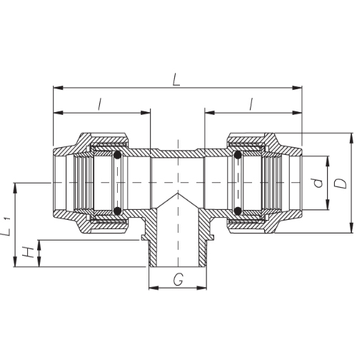 PP Klemmverbinder Typ UNIDELTA für PE Rohre, T-Stück 90° mit Außengewinde