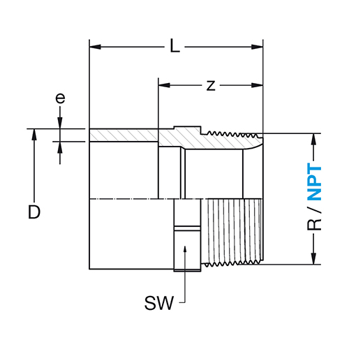 Übergangsnippel, PE 100, NPT, SDR 11, kurz, Außengewinde