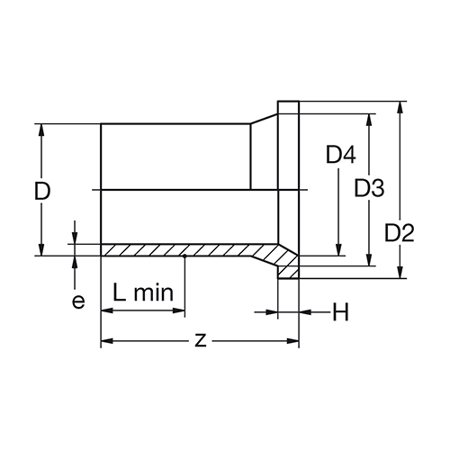 D [mm] e [mm] D2 [mm] D3 [mm] D4 [mm] H [mm] L min [mm] z [mm] Gewicht VE Art.-Nr. Artikel bestellen