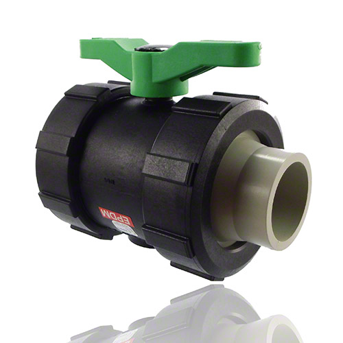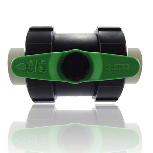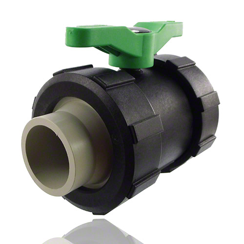 2-Wege-Kugelhahn PPGF, PP-Stutzen, FPM  = grüner Hebel