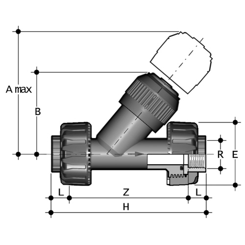 PP Rückschlagventil, Verschraubung mit Gewindemuffe, FPM