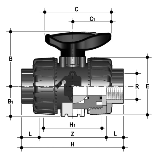 PVC-U Kugelhahn VKD, Gewindemuffe, EPDM