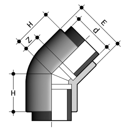 PVDF Winkel 45° zum Heizlelementmuffenschweißen