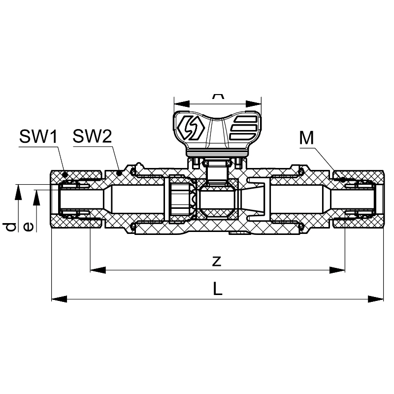 Absperrhahn aus PVDF, mit Schlauchanschluß, Typ SO BV 28A21